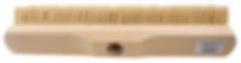 Szczotka wykonana została na bazie oprawy drewnianej. Zastosowane włosie to szczecina świńska. Szczotka posiada uchwyt metalowy na kij o średnicy 22 mm.