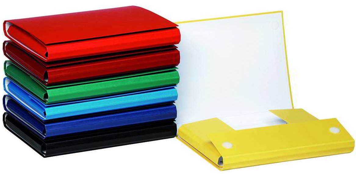 Wykonana z twardej tektury o grubości: 2mm. Jednostronnie barwiona, pokryta folią polipropylenową. Do formatu: A4 lub A5. Szerokość grzbietu: 40mm. Wyklejka papierowa, zamykana na rzepy.