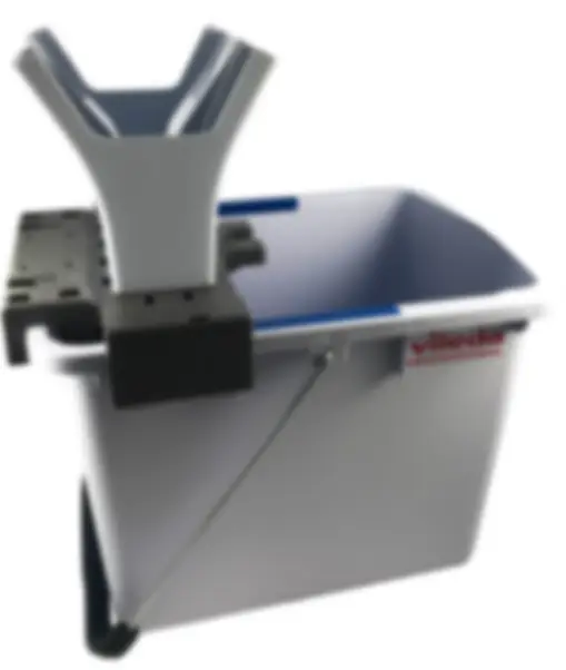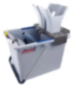 Prostokątny kształt wiadra zwiększa jego stabilność. Zintegrowany z wyciskarką uchwyt na kij ułatwiający obsługę.