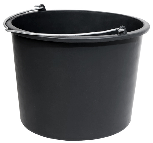 Wiadro budowlane w kolorze czarnym, zostało wykonane z wysokiej jakości tworzywa sztucznego. Wyposażone zostało w solidny uchwyt wykonany z drutu stalowego. Wiadro znajduje szerokie zastosowanie w pracach remontowo-budowlanych oraz gospodarstwach domowych.