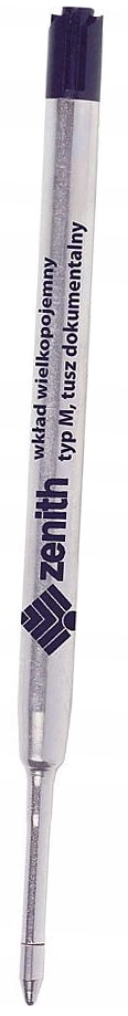 Wkład do długopisu Zenith, szerokość lini pisania: 0,6mm. Tusz odporny na działanie światła i wody. Długość lini pisania: 2 500 metrów. Kolor tuszu: czarny.