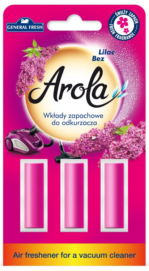 Wkłady Arola od General Fresh to produkt przeznaczony do umieszczania w odkurzaczu, który uwalnia przyjemny wiosenny aromat podczas sprzątania. To szybki i praktyczny sposób na odświeżanie powietrza bez dodatkowego wysiłku, jednocześnie produkt niweluje nieprzyjemny zapach kurzu, który towarzyszy odkurzaniu.