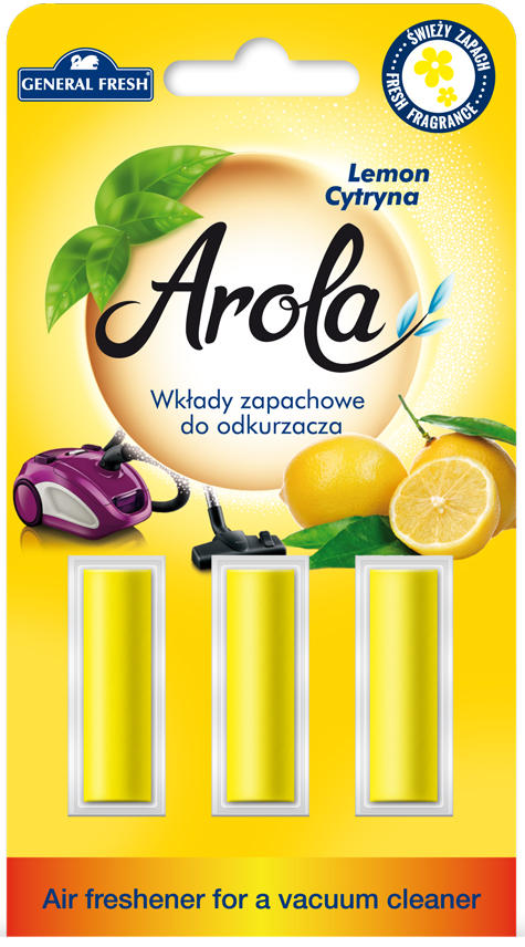 Wkłady Arola od General Fresh to produkt przeznaczony do umieszczania w odkurzaczu, który uwalnia przyjemny wiosenny aromat podczas sprzątania. To szybki i praktyczny sposób na odświeżanie powietrza bez dodatkowego wysiłku, jednocześnie produkt niweluje nieprzyjemny zapach kurzu, który towarzyszy odkurzaniu.