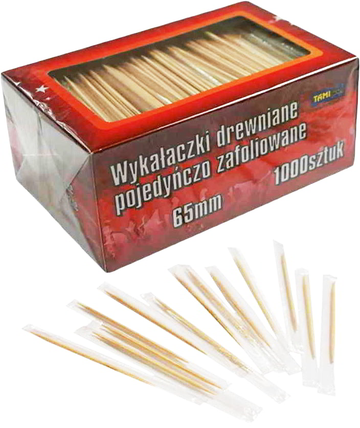 Wykałaczki drewniane higieniczne 1000szt pojedyńczo zafoliowane