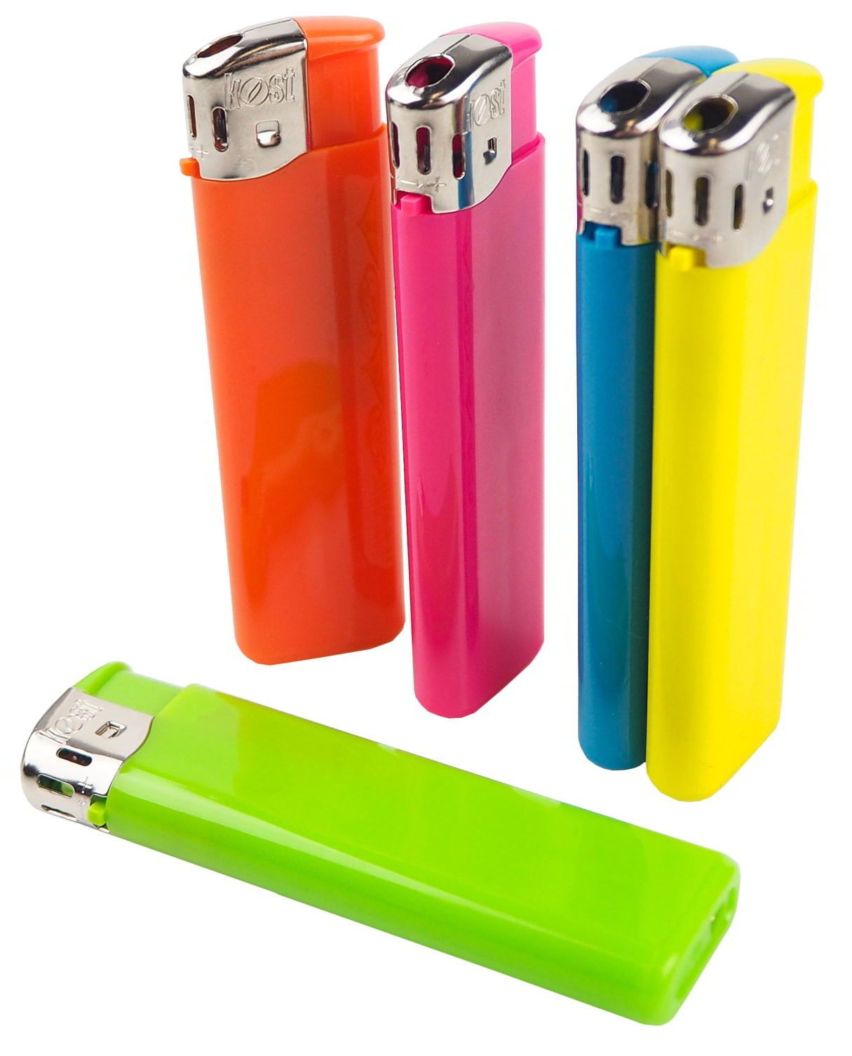 Wielokrotnego użytku zapalniczki napełnione gazem. Posiadają zapłon piezoelektryczny. Mix kolorów