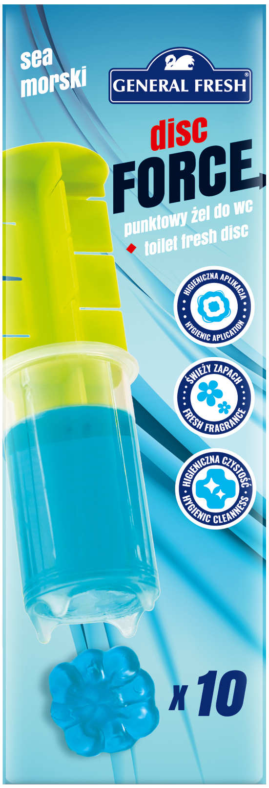 Żel do WC Punktowy Kleks DISC FORCE 60ml MORZE X 10 krążki żelowe General Fresh