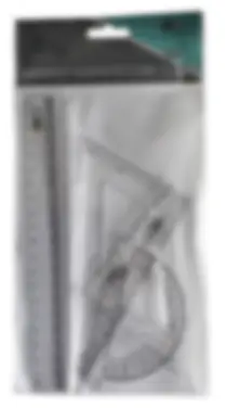 W zestawie linijka 20cm, kątomierz, dwie ekierki.